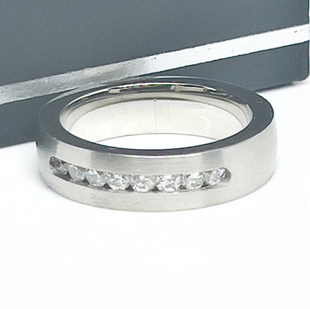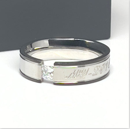 Stainless Steel 4mm CZ Wedding Band Ring -CS-15