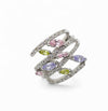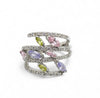 Add a touch of glamour to your outfit with our Sterling Silver Multicolor CZ Ring. Made with high-quality sterling silver and sparkling multicolored CZ stones, this ring is sure to catch the eye and elevate any look. Perfect for any occasion, this ring is a must-have for any fashion-forward individual.