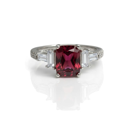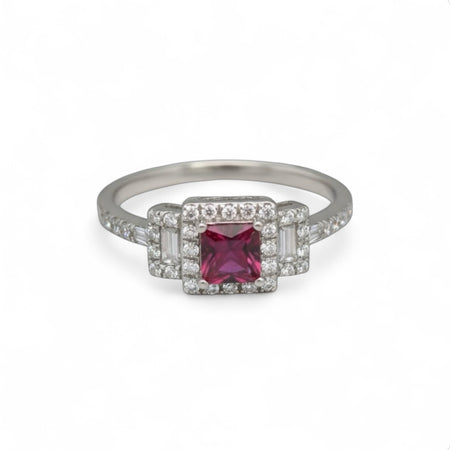 Sterling Silver Rectangular Cut Garnet CZ Ring-AE-03