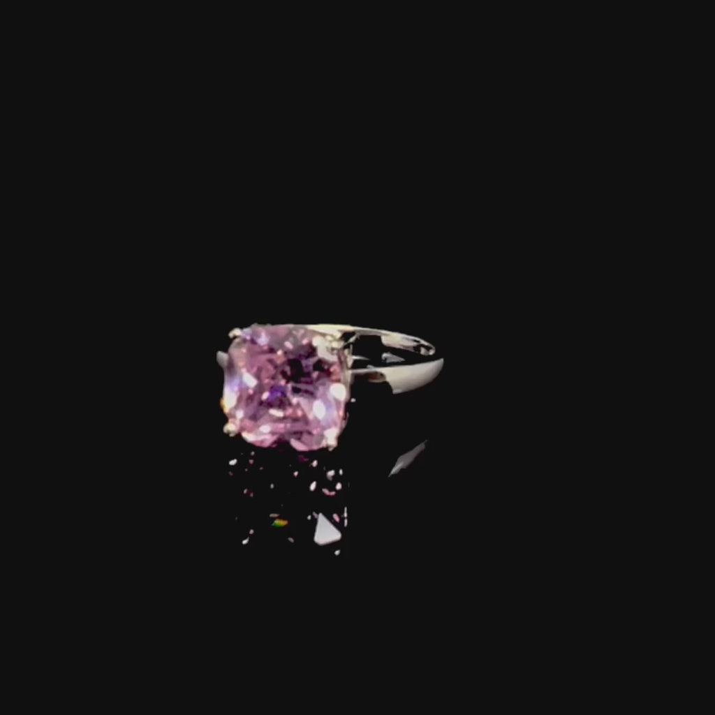 Cushion Cut Pink CZ Sterling Silver Ring-AE-02
