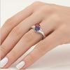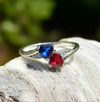 Sterling Silver Double Heart Garnet & Blue Spinnel CZ Ring-AE-15
