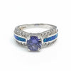 Sterling Silver Lab Opal Round Tanzanite CZ Ring -AE-16