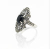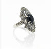 Sterling Silver Pear Shape Black Onyx Marcasite Ring-AE-43