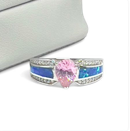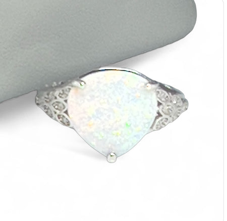 Sterling Silver Oval White Lab Opal CZ Ring-AE-37