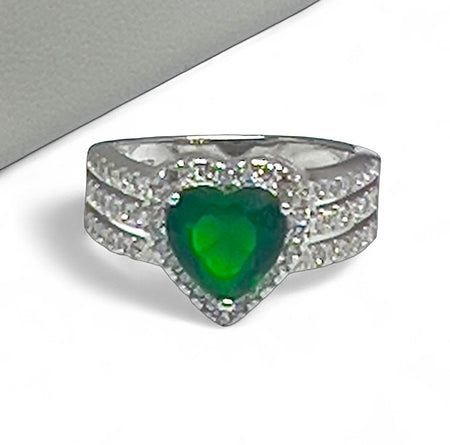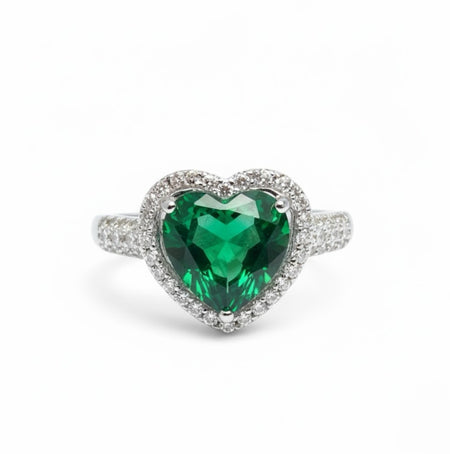 Sterling Silver Emerald Heart Halo CZ Ring-AE-31
