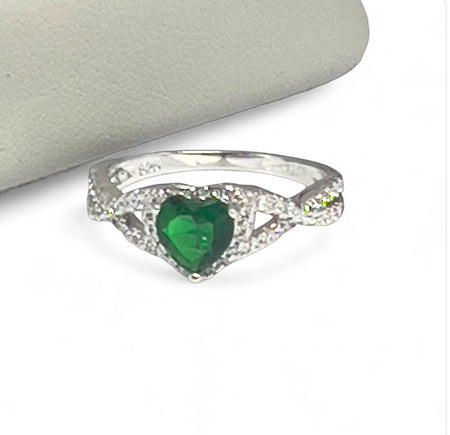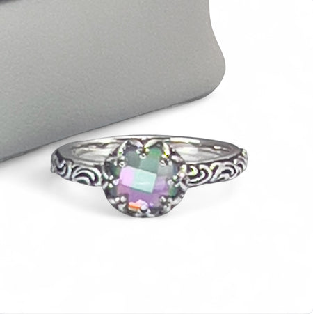 Sterling Silver Emerald Cut Pink Clear CZ Ring-AE-72