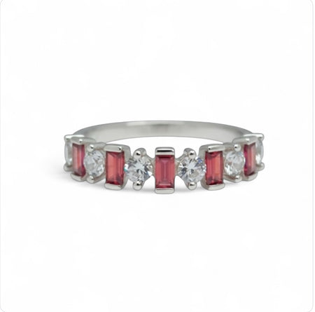 On Sale Quick Shop Sterling Silver Round & Baguette Garnet CZ Ring -AE-27 now $39.00 $48.00 Quick Shop