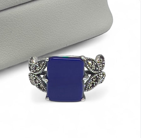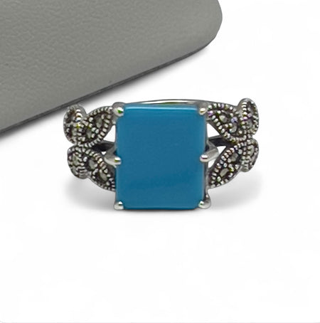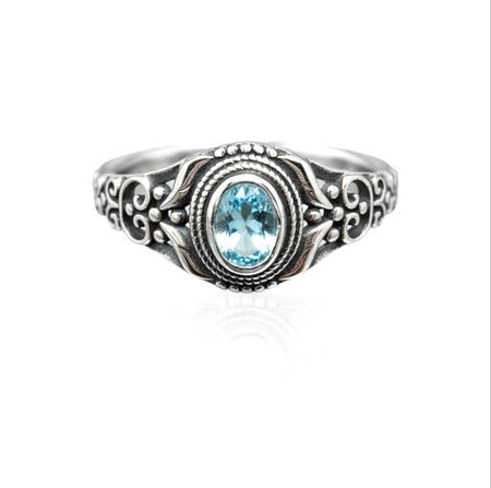 Sterling Silver Austere Oval Cut Aquamarine CZ Ring-AE-71