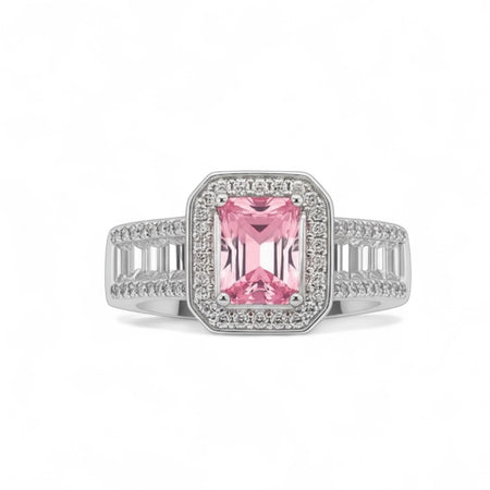 Sterling Silver Emerald Cut Pink Clear CZ Ring-AE-72