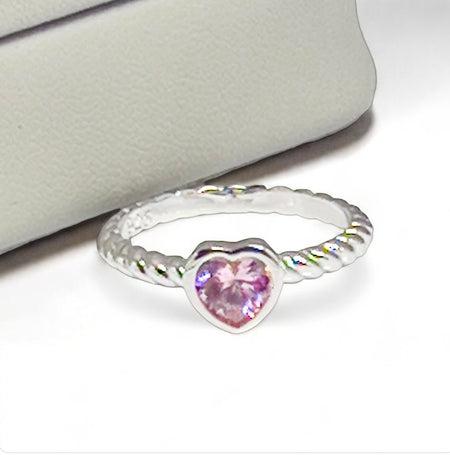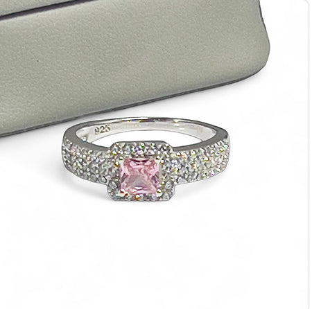 Sterling Silver Pink Princess Cut CZ Ring-AE-93
