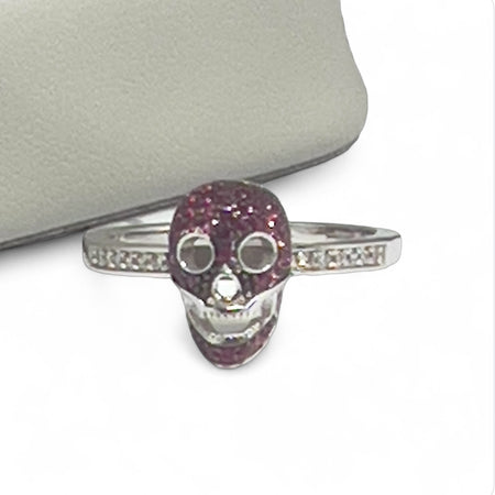 Sterling Silver Black Rhodium Two Tone Ruby CZ Skull Ring-AE-96