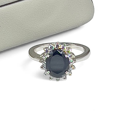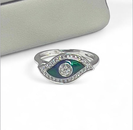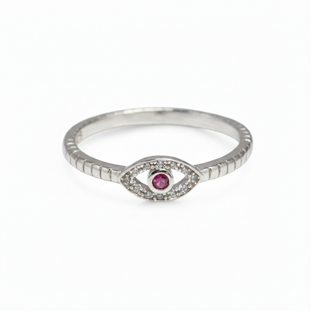 Sterling Silver Dark Garnet Stone Evil Eye CZ Ring-AE-91