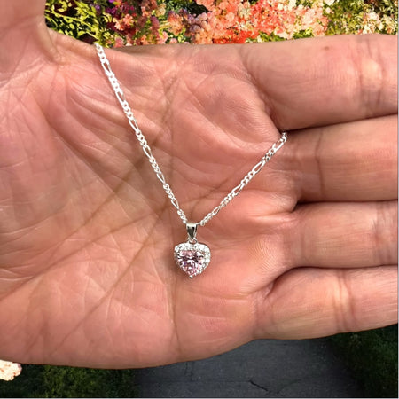 Sterling Silver Heart Shape Pink CZ Necklace-SN-16