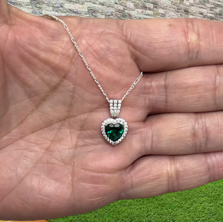 Sterling Silver Emerald Big Heart CZ Pendant Necklace-SN-21