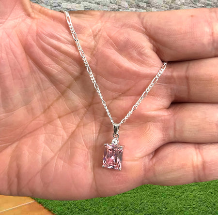 Sterling Silver Rectangular Pink CZ Necklace-SN-15