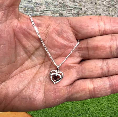 Sterling Silver Heart Garnet CZ Necklace-SN-14