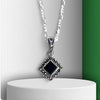 Sterling Silver Black Onyx Square Marcasite Pendant Necklace-SN-17