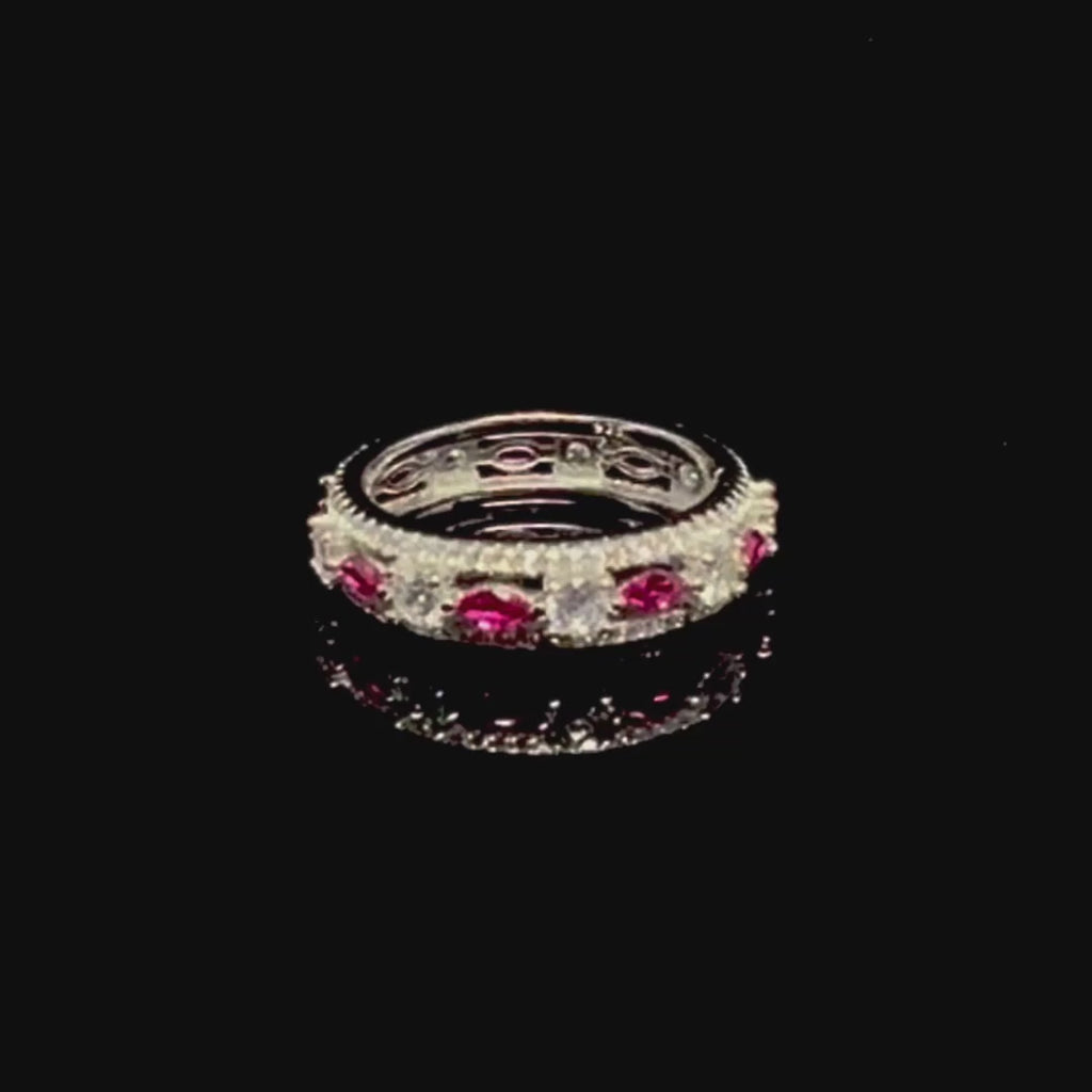 Sterling Silver Modern Eternity Wedding Ring with Simulated Ruby-AE-120