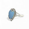 Sterling Silver Pear Shape Simulated Turquoise Marcasite Ring-AE-88