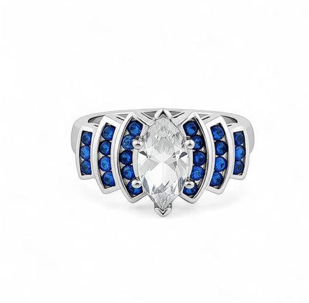 Sterling Silver Exquisite Blue Spinel Marquise Clear CZ Ring-ER-151