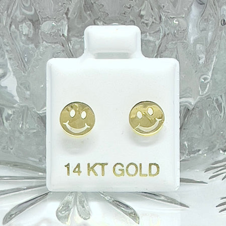 14K Yellow Gold Happy Face Stud Screw Back Earring-GE-78