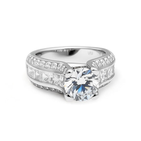 Sterling Silver Round & Princess Cut Clear CZ Ring-ER-68