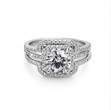 Sterling Silver Engagement Round Halo Pave CZ Set Ring-ER-126