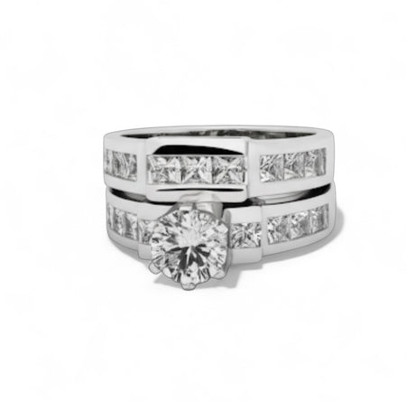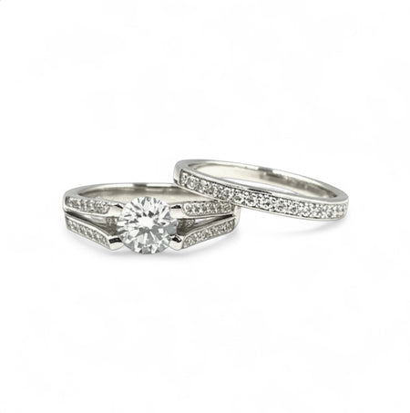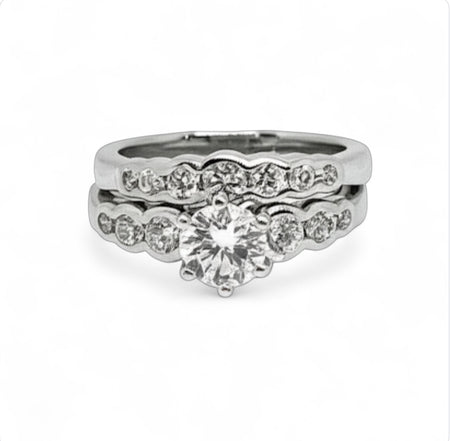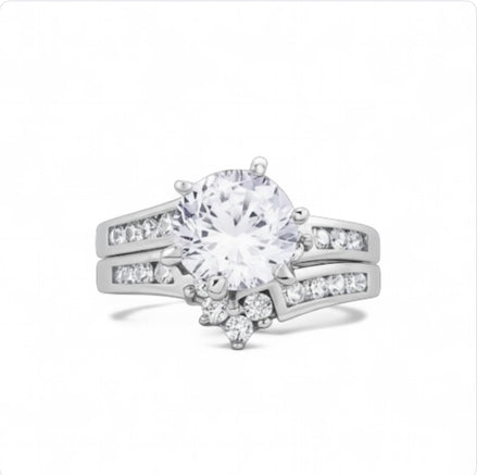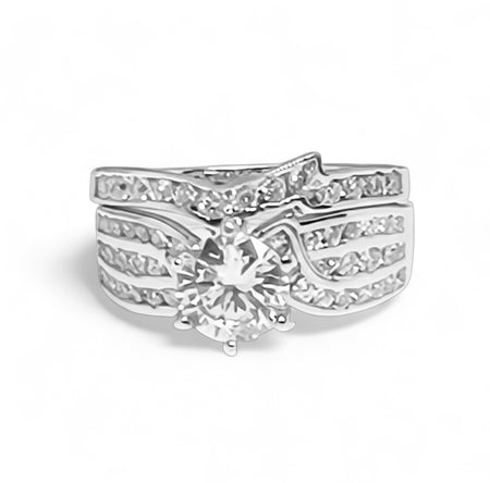 Sterling Silver CZ Engagement Ring Set-ER-112