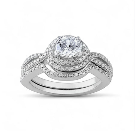 Sterling Silver Halo Round CZ Engagement Set Ring CZ-ER-114