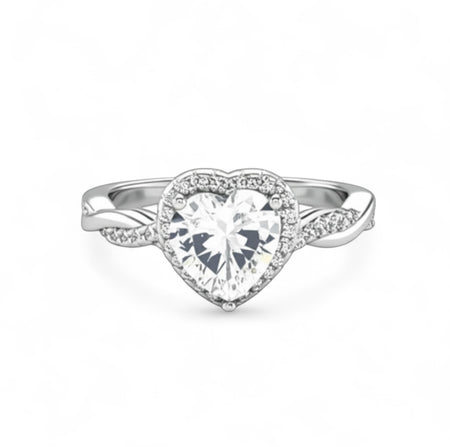 Sterling Silver Heart-Shaped Halo Engagement Ring-ER-113