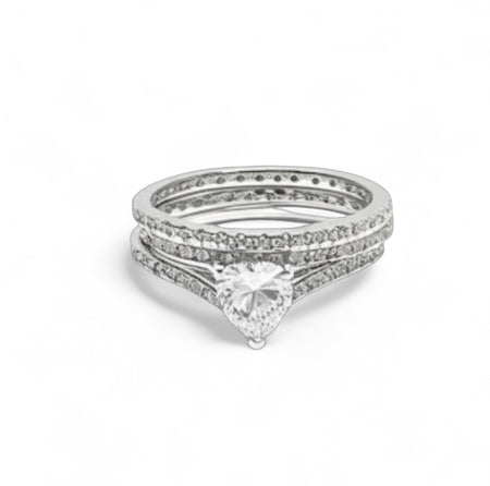 Sterling Silver 2-Piece CZ Engagement Set Ring-ER-130