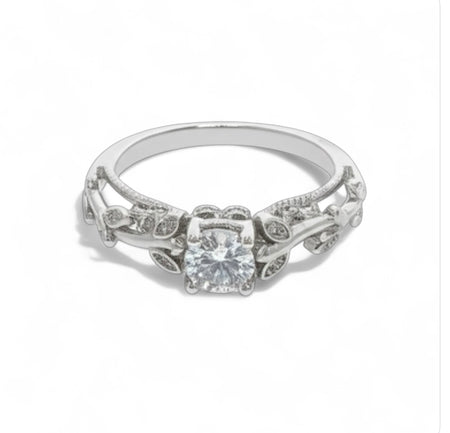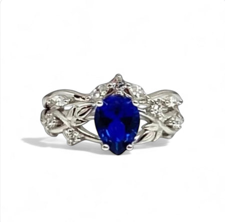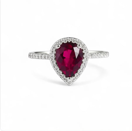 Sterling Silver Filigree Tear Drop Ruby Wedding Ring-ER-165