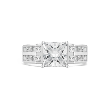 Sterling Silver Yellow Tone Asscher -Cut CZ Engagement Ring-ER-168