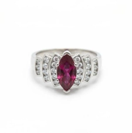 CZ Sterling Silver Ring Marquise Cut Ruby - ER- 25