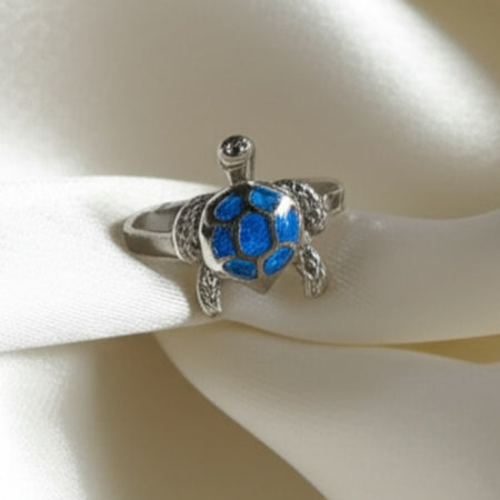 Sterling Silver Blue Opal Turtle Ring-SR-08