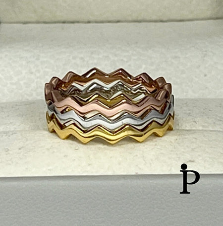 Sterling Silver Tri-Color Zig-Zag Ring-SR-23