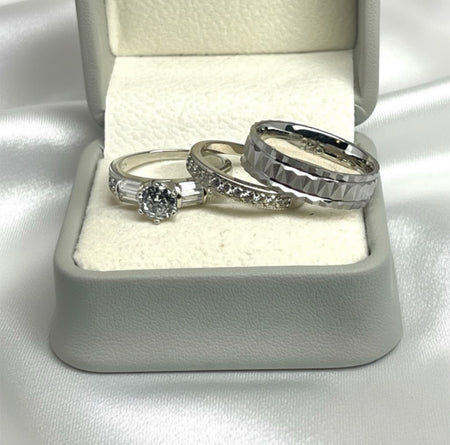 Sterling Silver Trio Wedding Ring Sets-SST-01