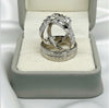 Experience the ultimate symbol of love and commitment with our Sterling Silver Trio Wedding Ring Sets! The for her Sterling Silver Clear Engagement Set Ring and for him Sterling Silver Diamond Cut 2 Layer Zig Zag Wedding Band Ring combine elegance and durability, making them perfect for your special day.
